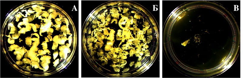 Фото 2. Чашки с фибриновыми сгустками, извлеченными из экспериментальных систем через час после начала процессов свертывания. Предоставлено авторами исследования