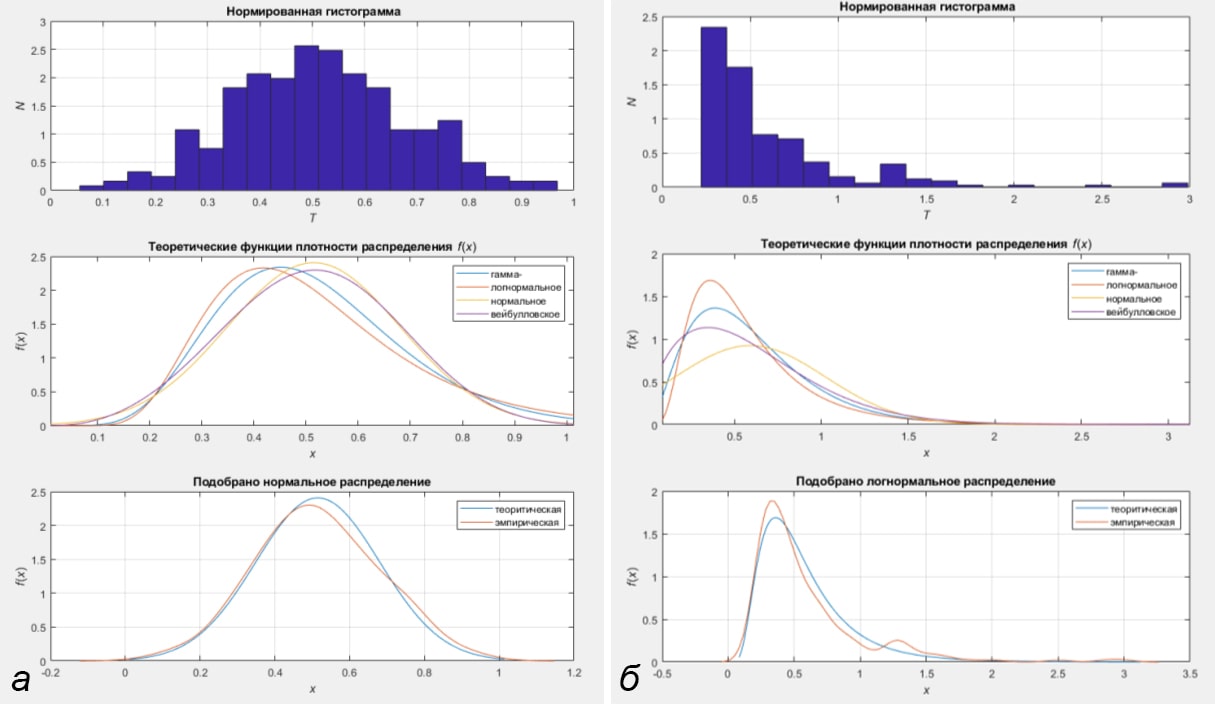 эмпирическая функция распределения Tпол с уровнем значимости α = 0,05 соотвествует нормальному распределению с параметрами распределения: Мх = 0,517, σx = 0,164 (рисунок 4а);