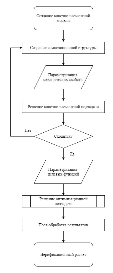 Анализ литературы показал, что практически нет работ по компьютерному моделированию топологической оптимизации конструкций из слоистых композиционных материалов. Небольшое количество работ объясняется не отсутствием интереса к этим проблемам, а существенными трудностями, связанными с построением алгоритма расчёта с помощью интегрированных систем CAE.