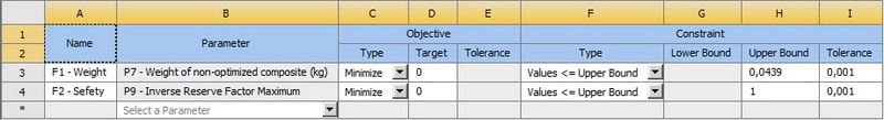 Следующим шагом необходимо описать целевые функции. Во вкладке «Objectives and Constrains» задаются целевые функции оптимизации, а также их возможные ограничения. Исходя из поставленных задач зададим следующие целевые функции (Рисунок ):