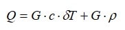 — коэффициенты теплоотдачи на тепловоспринимающих и тепловыделяющих поверхностях, δ — толщина слоев термосопротивления, λc — коэффициент теплопроводности материала этих слоев, Вт/(м·К); F – поверхность теплообмена (сечение теплового потока), м2; ΔT — температурный напор – разность температур теплообменивающихся тел, град или К; λ — коэффициент теплопроводности обогреваемого материала, Вт/(м·К); gradT — градиент температур в нем – разность температур в заданных точках массива, деленная на расстояние между ними, град/м; G — общая масса материала, кг; C — его удельная теплоемкость, КДж/(кг·град); δT — нагрев материала – разность между конечной и начальной температурами; ρ — удельная теплота плавления, КДж/кг; QPH — низшая теплота сгорания топлива, кДж/кг; η — коэффициент полезного действия агрегата, учитывающий потери теплоты, %.